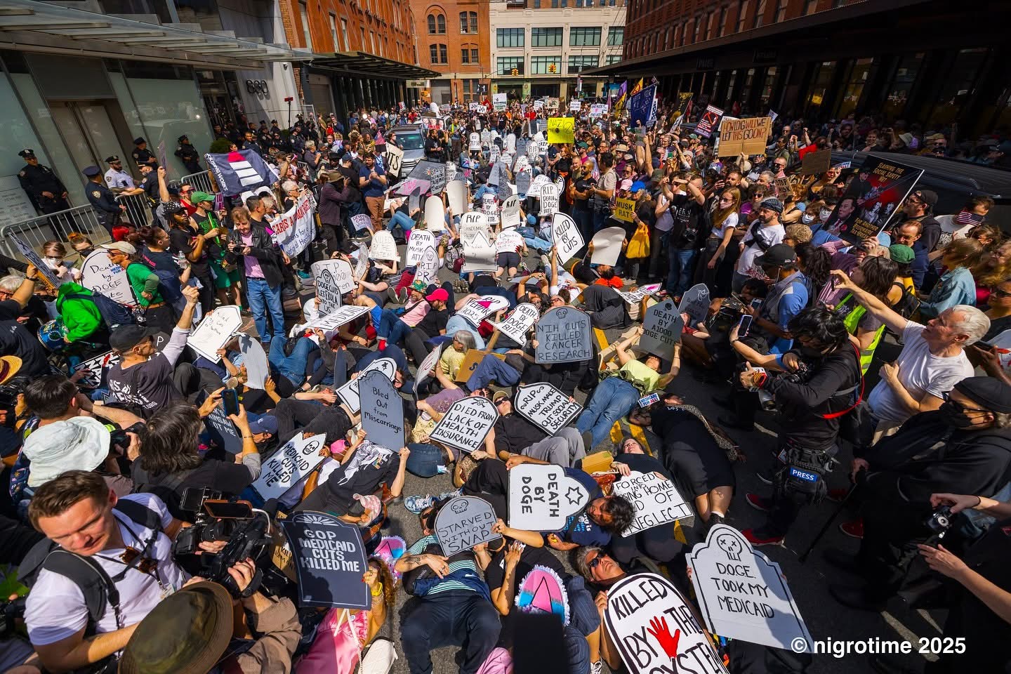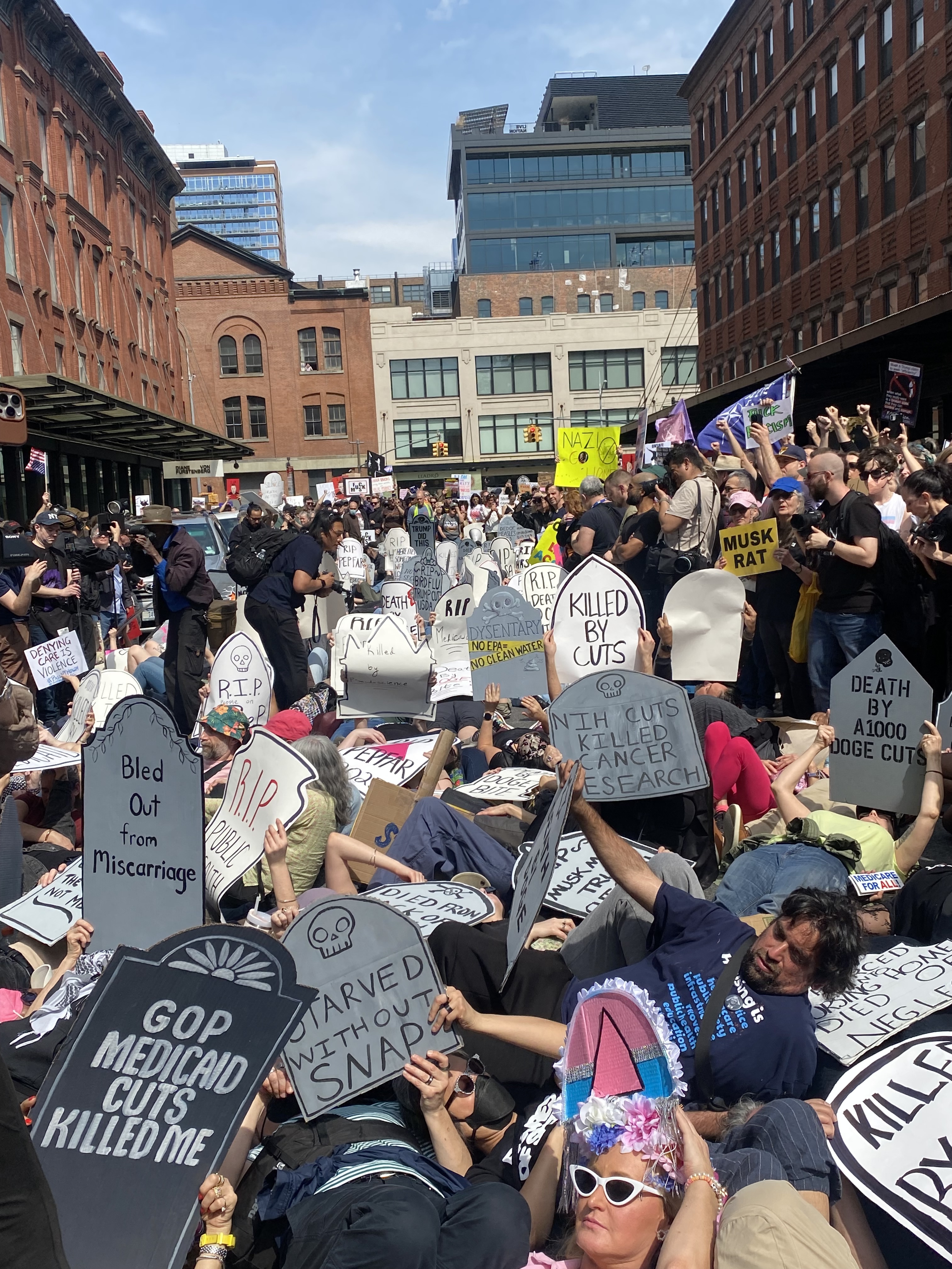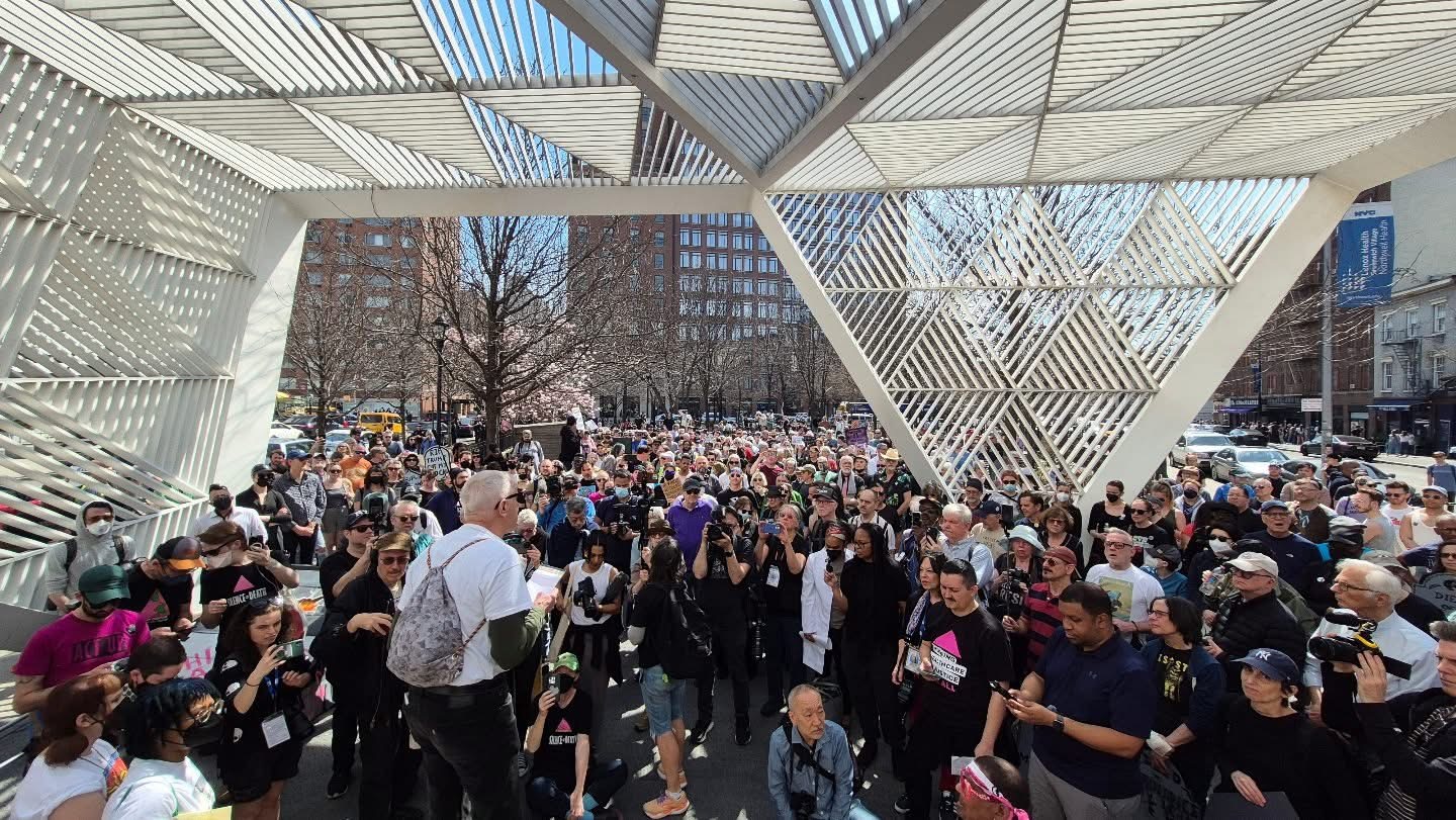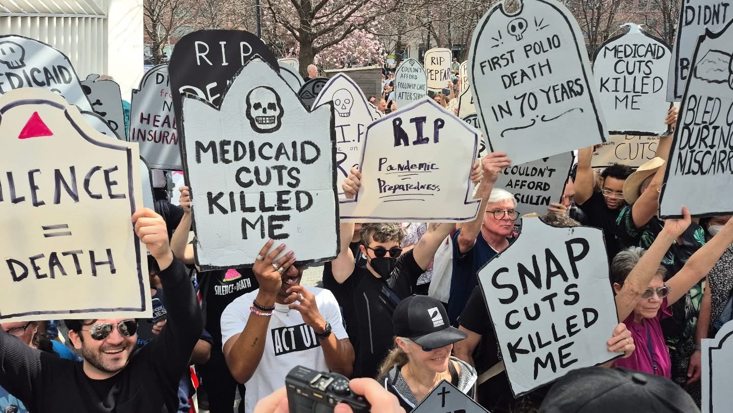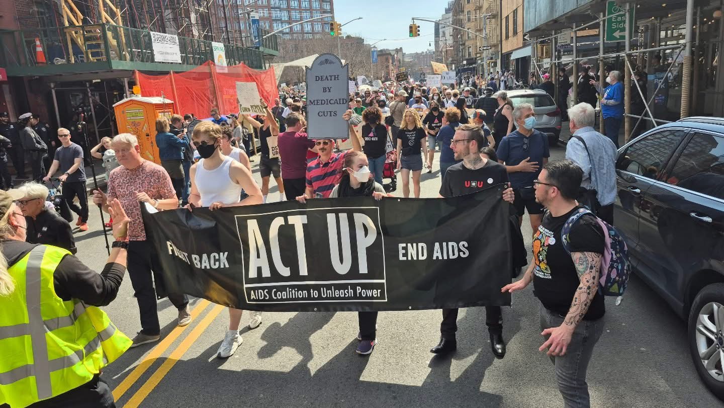 Over 1,000 people joined ACT UP in New York City for a powerful rally, march, and die-in, marking the group’s 38th anniversary. Protesters called out the devastating impact of Trump, Musk, and RFK Jr.'s cuts to Medicare, Medicaid, PEPFAR, USAID, and vital public health agencies. The march—from the AIDS Memorial to the Tesla Showroom—demanded accountability for policies that threaten millions of lives.
