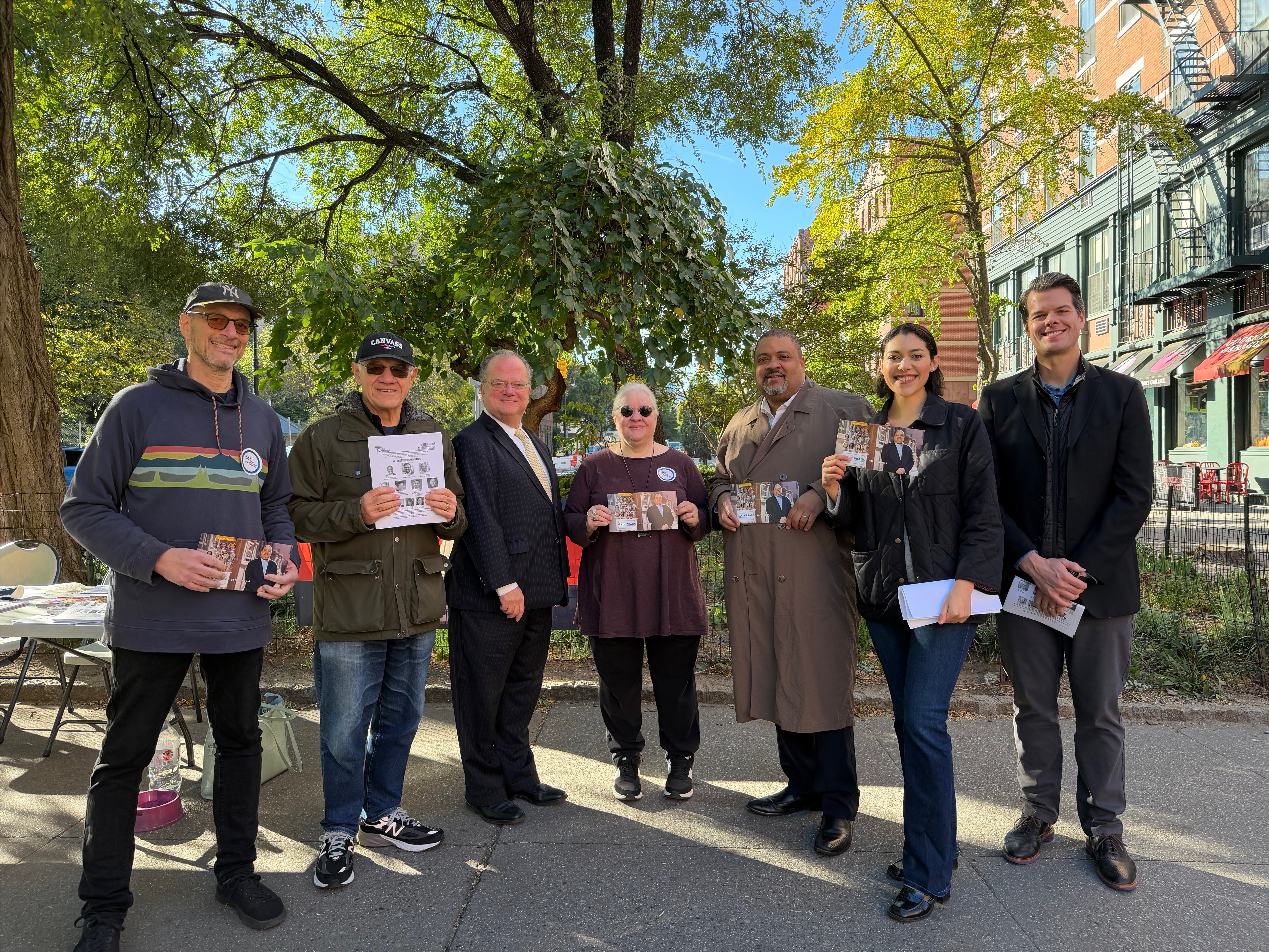 with VID endorsed candidates, Judge James Clynes (3rd from left), Manhattan DA Alvin Bragg (5th from left), Somer Omar (6th from left) and Eric Wursthorn for Civil Court